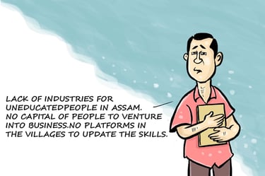 Socioeconomic Mapping: Household-level surveys captured migration histories, income patterns, and pandemic-related livelihood disruptions. Out of 1,841 households, 9.39 percent of youth were identified as migrants employed either within or outside Assam in manufacturing, service, or construction sectors.